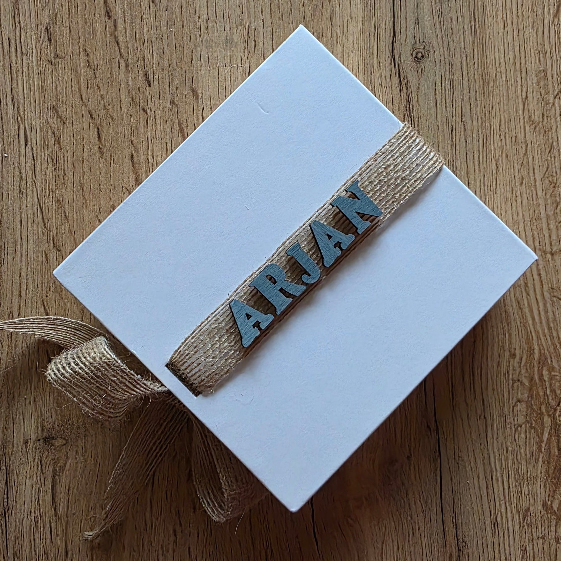 Wat deze chocobox extra bijzonder maakt, is de persoonlijke afwerking. Op het doosje plaatsen wij de naam van de ontvanger, zorgvuldig samengesteld met houten letters. Dit geeft elk boxje een warme, natuurlijke en handgemaakte look.