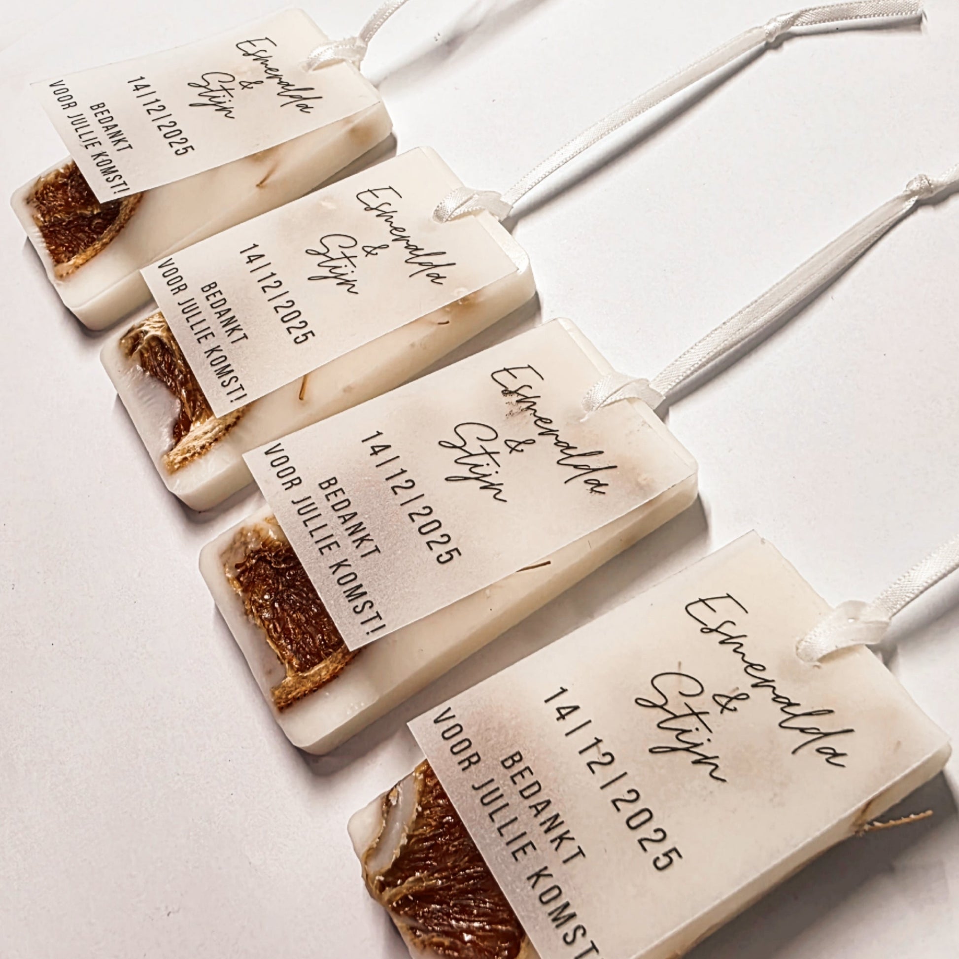 Op zoek naar een uniek en persoonlijk bedankje? Onze elegante sweet orange geurhangers van soja was is een perfecte keuze! Met een heerlijke zoete sinaasappel geur zorgt deze geurhanger voor een frisse en knusse sfeer in elk ruimte. Voeg een persoonlijke tekst toe voor een speciale touch. Kant en klaar verpakt in een stijlvol cellofaanzakje.